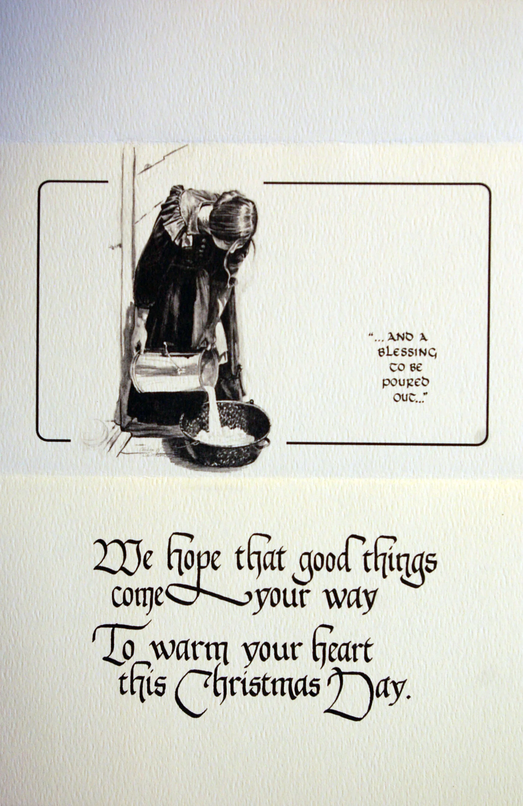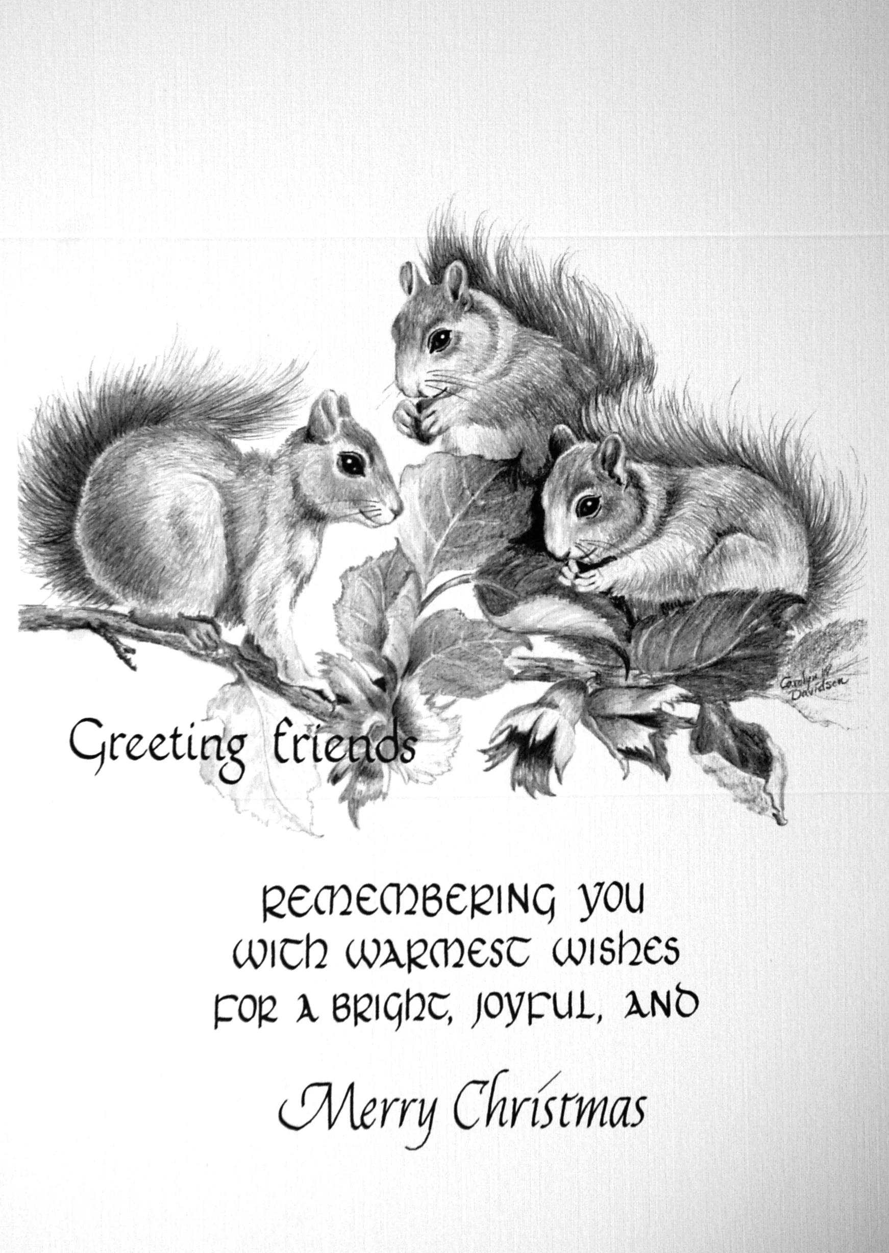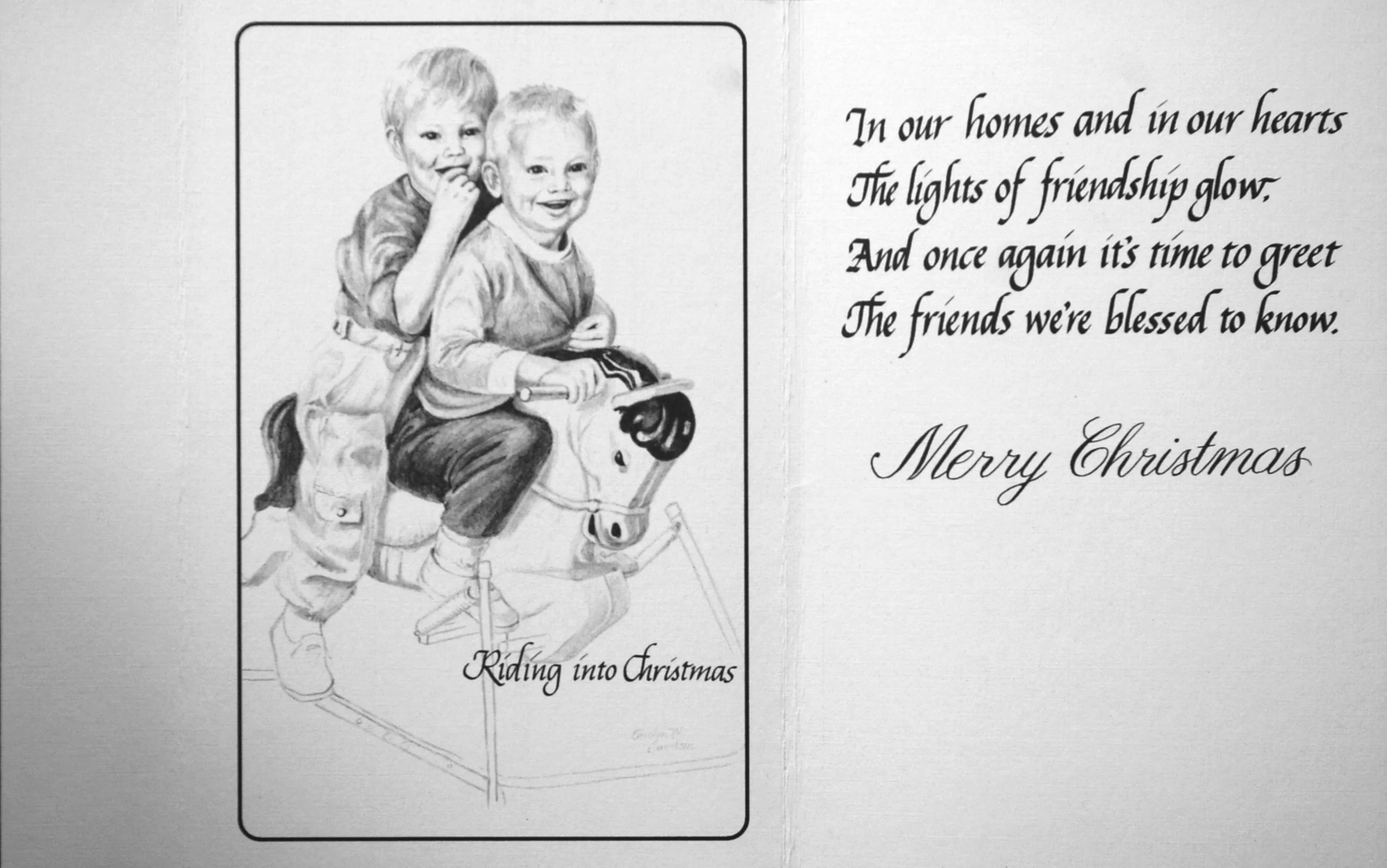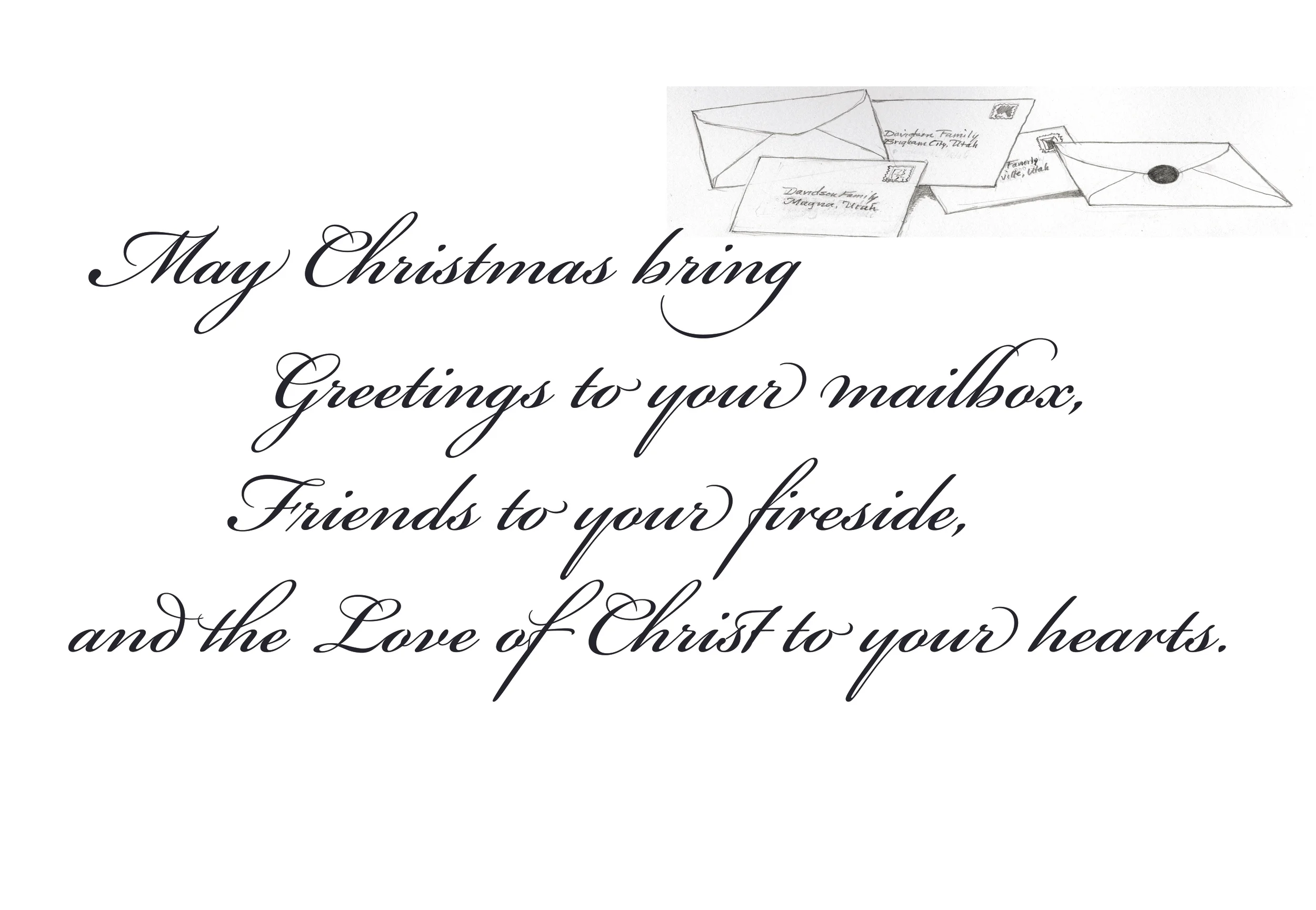 Over the years since I started to make Custom Christmas Cards for Friends and Family, I have kept a few of each year's printing. Each one has special meaning to my family as they share either a hand lettered special phrase or memorable hand drawn image. I hope that as you look through them you may find something that would be fun to add to your Christmas wishes this year. These are available in groups of 10. They fold in thirds allowing them to be taped shut and sent without envelopes.